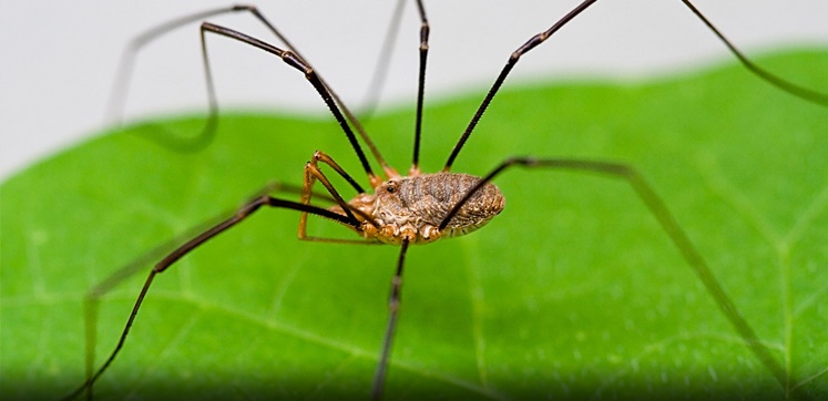 Nhện Harvestmen là loài nhện vô hại với tám cái chân dài và mỏng đặc biệt. Chúng không quay mạng nhện mà thỉnh thoảng đi lang thang vào nhà.